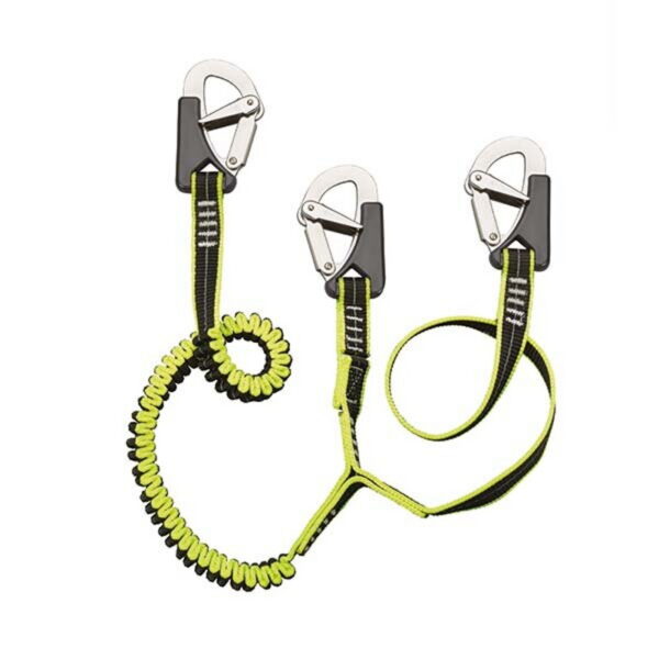 Three double action safety hooks can be operated with one hand. Fitted to one line so even when changing position you never need to be unclipped. Elasticated for comfort and fitted with overload indicator. Polyester band with reflector for best visibility.