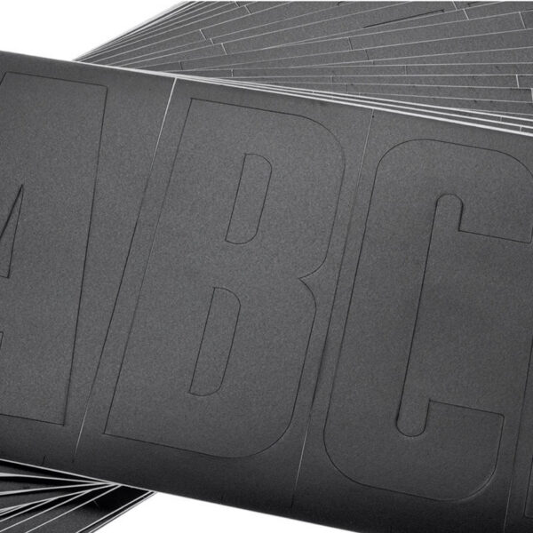 Use these number and letter set to easily stick names, registration numbers or similar lettering to the side of your boat. The vinyl stickers are completely waterproof and extremely durable. Colour: black. Height: 80mm. 144 pieces in total.