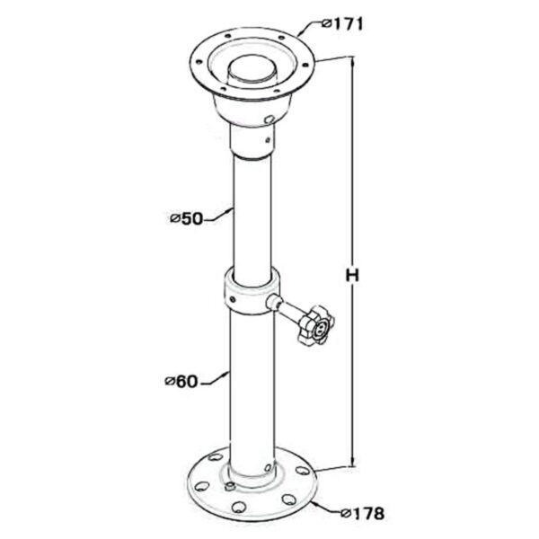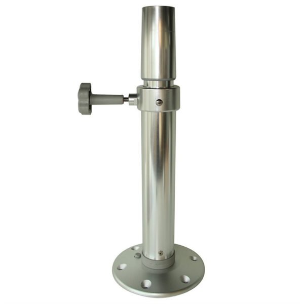 Consists of two parts: bottom floor attachment (table leg base plate) and height-adjustable table leg.