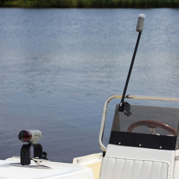 The Attwood portable LED navigation lights are small, lightweight and are especially suitable for mobile use. It offers several mounting options with horizontal or vertical mounting. The housing is waterproof, shock resistant and durable. Thanks to high quality LED technology, this navigation light consumes very little power and is extremely bright. Includes: LED bow light (red / green), LED tail light (white), 1x snap-in holders, 3-piece metal rod (total length approx. 60 cm), 2x C–clamps (max. span 55 mm), and fixing screws for the snap–holders and metal rod. AAA batteries not included.