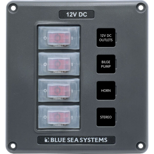 - Set of 15 square format circuit labels are included, and are easy to replace. Additional standard or custom labels are available through Blue Sea Systems