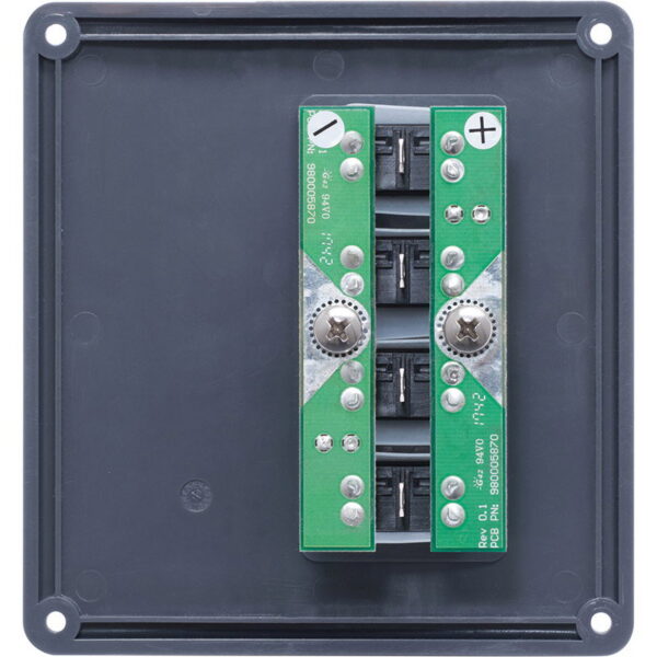 - Two-wire connection for powering all panels is simple and requires #10 ring terminals. Terminals screw to bus bars for secure connections