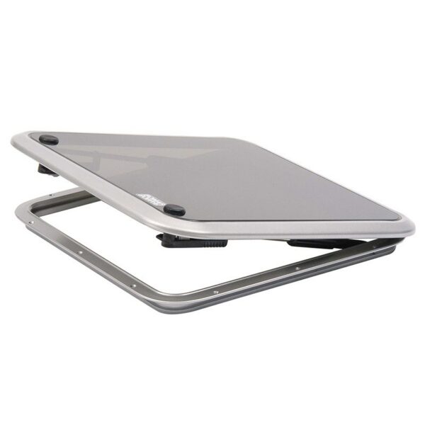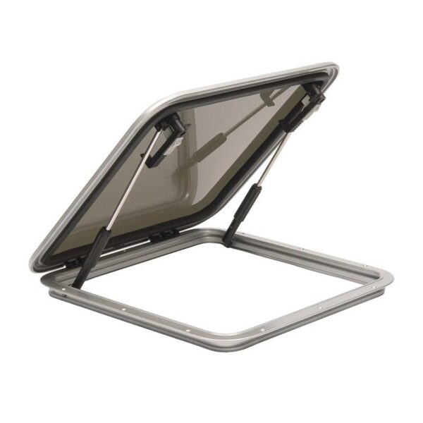 Deck hatch with strong aluminum frame and gray acrylic glass.