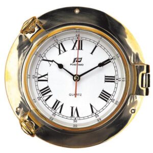 Clock with Roman numerals, quartz mechanism. Strong brass body and cut (beveled) edge glass.