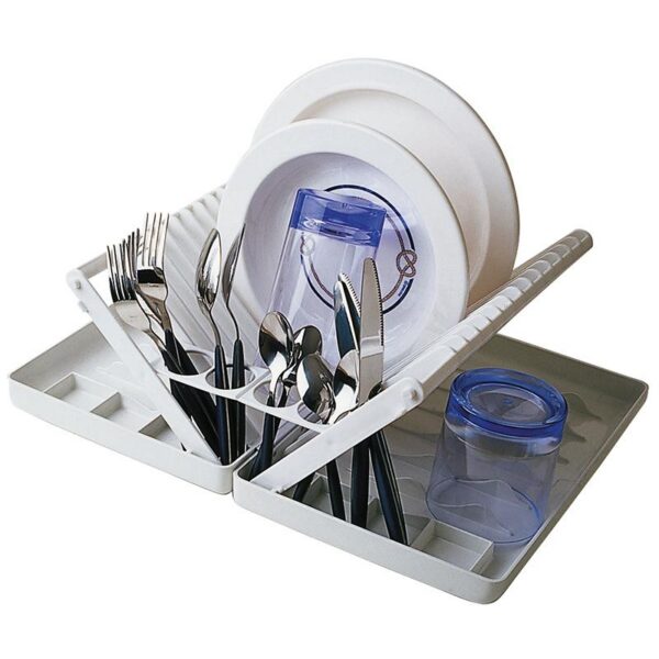 A practical tableware rack that can be folded if necessary. Holds 13 plates, separate places for cutlery.