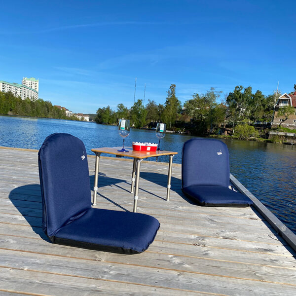 Comfortable and simple soft chair with adjustable backrest (6 positions). Waterproof and UV-stable Marine-Blue dark blue fabric. Handle. Total length 930, width 450.