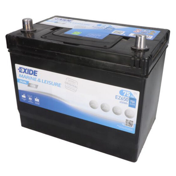 Exide DUAL battery range is designed for boats and caravans with one battery bank for all consumers. It is also suitable for additional batteries applied directly to electrical winches, thrusters and trolling motors. The batteries are partially discharged during use. DUAL’s reinforced design, combined with a good recharging procedure, is key to providing the best result and service life.
