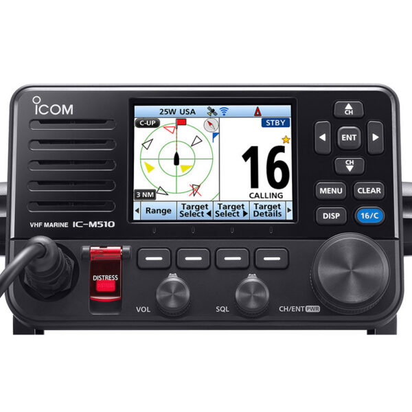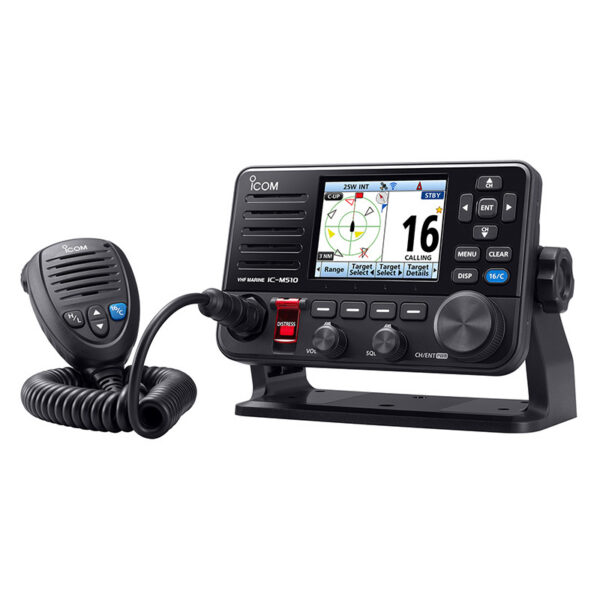 The IC-M510E is slim (depth: 53.6 mm) and easy to install in your boat. It’s all-new sleek design is suitable for either panel or trunnion mounting.