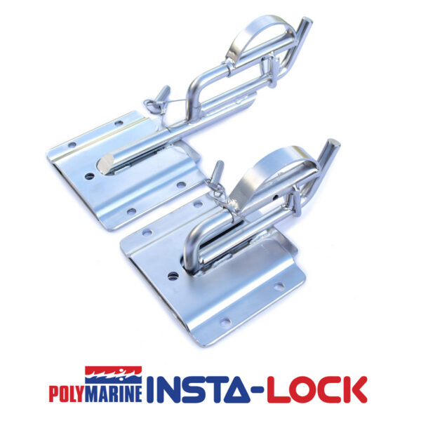 The Quick Release, Low Profile Davit Shoes are designed to fit Davit Heads made for Swim Platforms and Transom Steps. By releasing the pin the davit head can be quickly removed and stowed away giving unhindered access to the platform. When needed again, Davit Heads can be reinstalled in seconds ready for your dinghy to safely lock on.