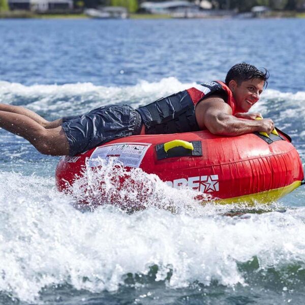 Set foot on the almighty Hotseat, Jobe’s fastest and most durable 1 person donut towable. The difference between the Hotseat and the other donut towables is the full 840 denier cover, which makes this the most durable donut towable. The Hotseat is equipped with 4 luxurious neoprene knuckle-guard handles which offer grip and comfort.