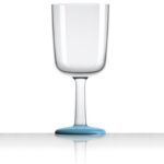 Crystal clear polycarbonate that is as heavy as real glass. Non-slip rubberized bottom. Can be washed in a washing machine. Blue, green, turquoise, orange.