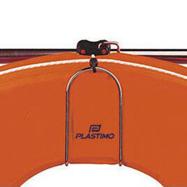 The perfect accessory for your lifebuoy! This lifebuoy mounting bracket from PLASTIMO, made of stainless steel, can be flexibly mounted on any railing with diameters from 18,5 to 25,5 mm. It can accommodate all lifebuoys that are no thicker than 105 mm. The bracket also features a shock cord and plastic snap shackle to secure the buoy, even in heavy seas. The lifebuoy can be removed from the holder just as quick and easily as it can be secured. Supplied with the screws required for mounting.