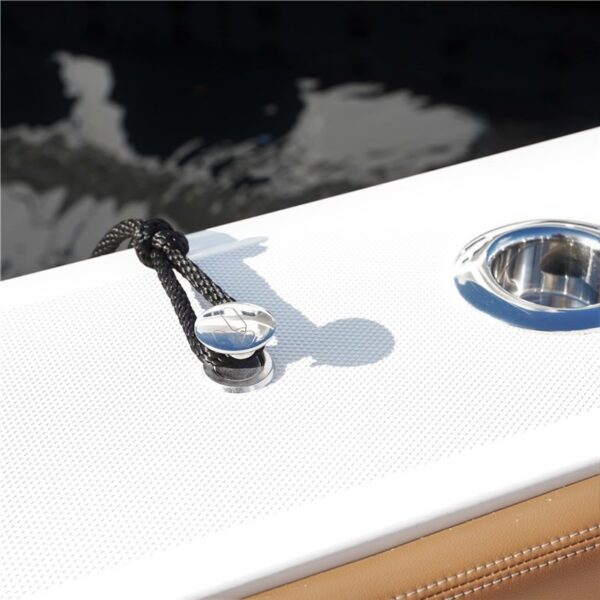 Clean and elegant design. Pull and turn the knob to position, allowing quick and effortless work on attaching or removing fenders. Spring loaded hook for line security. Installation hole: 34.9mm