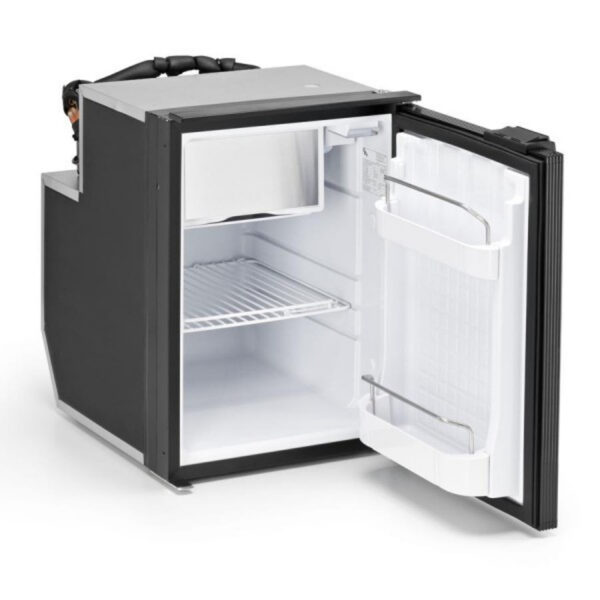 Because of the thoughtful placement of the compressor on a shelf on the back of this boat fridge, more space can be allocated on the bottom deck for heavier items like beverages.   Ample shelf storage on the door gives this small boat fridge big capacity for cruisers!