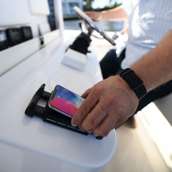 Scanstrut ROKK Active securely holds and wirelessly charges your phone even in the toughest conditions. Now you can keep your phone in reach, fully charged and ready to go. The high-grip, self-aligning jaws ensure your phone is held tightly and in the optimum charging position every time.