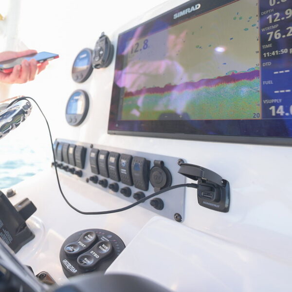 Flip Pro is designed for use with either a 12V or 24V input and features 1x USB-A and 1x USB-C charging port. This provides the optimum choice of connection and the fastest charging for your device onboard.