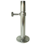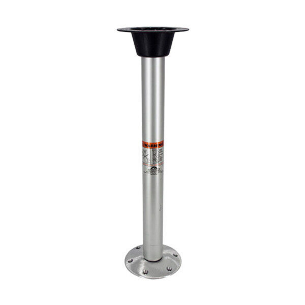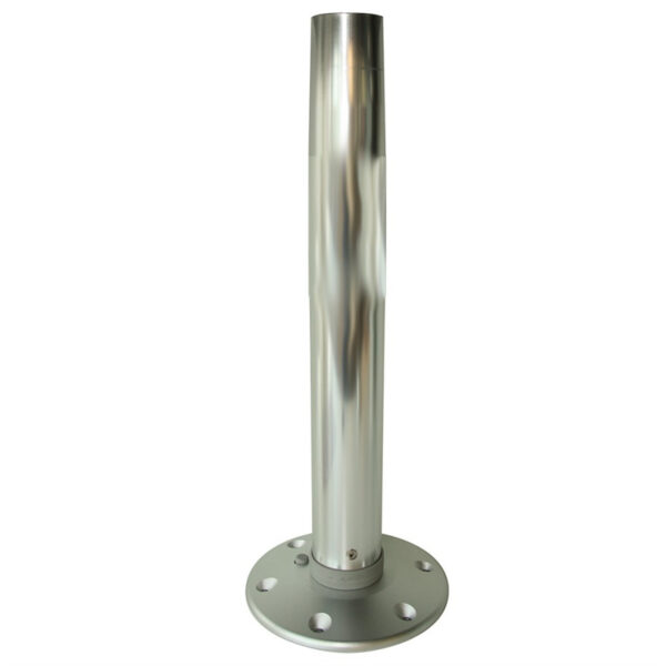 Consists of three parts: bottom floor attachment (table leg base plate), table leg and upper table top attachment.