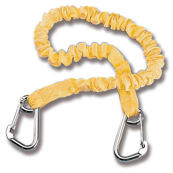 An elasticated nylon webbing safety line with snap-hook at both ends.